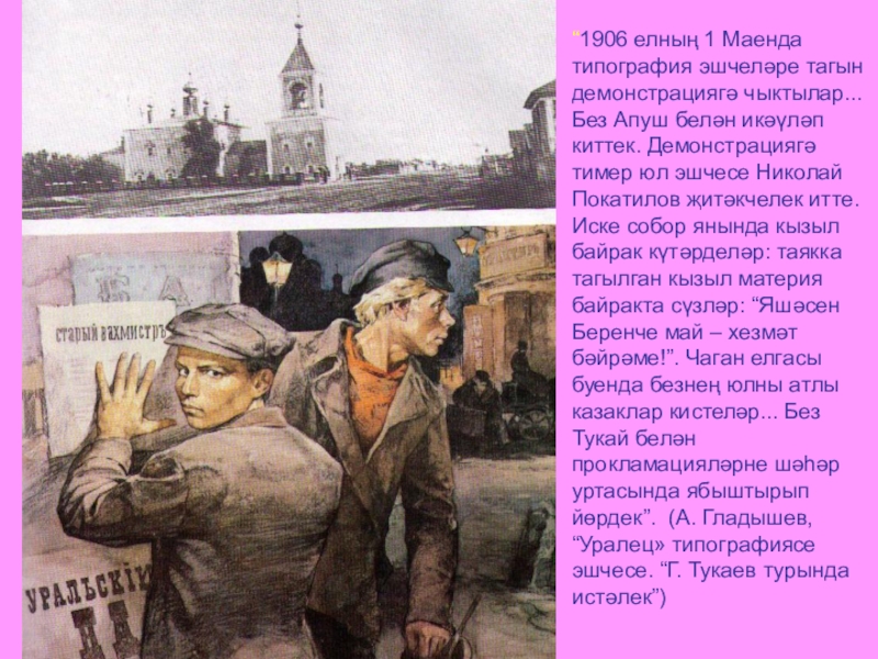 Слайд 21“1906 елның 1 Маенда типография эшчеләре тагын демонстрациягә чыктылар... Без Апуш