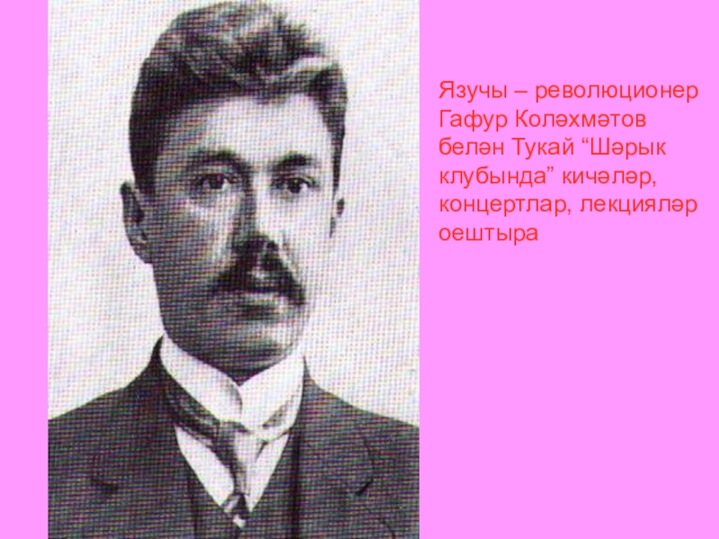 Слайд 33Язучы – революционер Гафур Коләхмәтов белән Тукай “Шәрык клубында” кичәләр, концертлар,