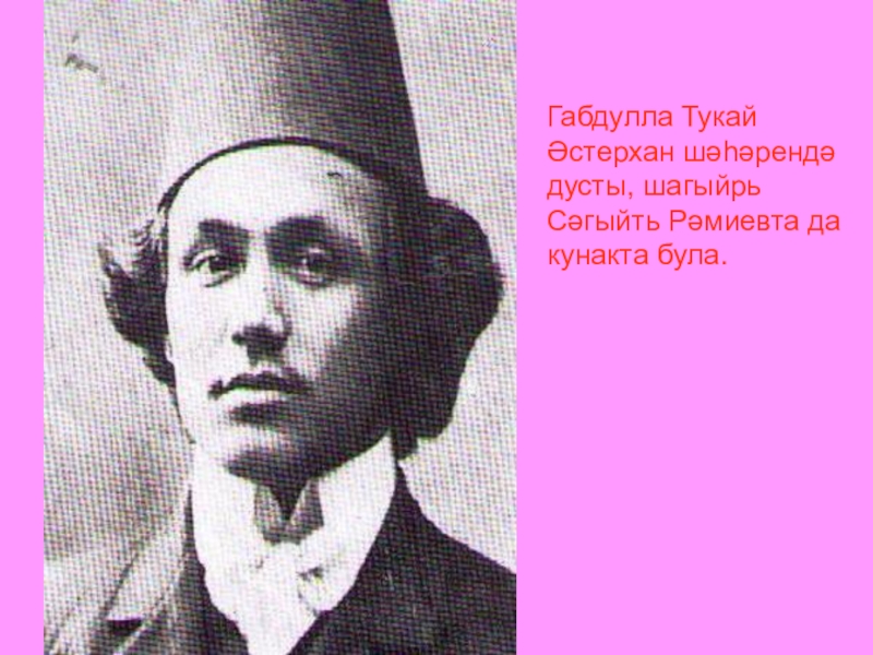 Слайд 31Габдулла Тукай Әстерхан шәһәрендә дусты, шагыйрь Сәгыйть Рәмиевта да кунакта була.