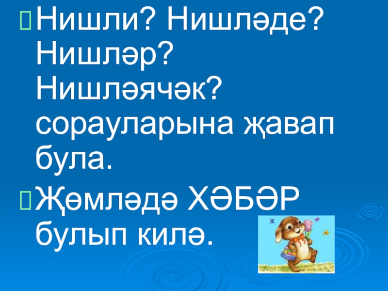 Слайд 3Нишли? Нишләде? Нишләр? Нишләячәк? сорауларына җавап була.
