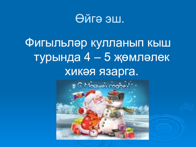 Өйгә эш.Фигыльләр кулланып кыш турында 4 – 5 җөмләлек хикәя язарга.