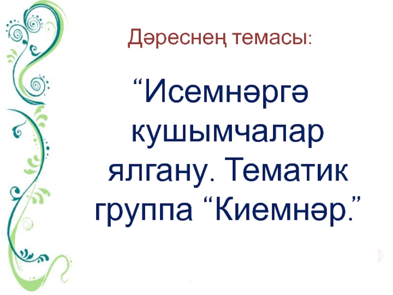 Презентация, доклад по татарскому языку на тему: Исемнәр. Тематик группа Киемнәр