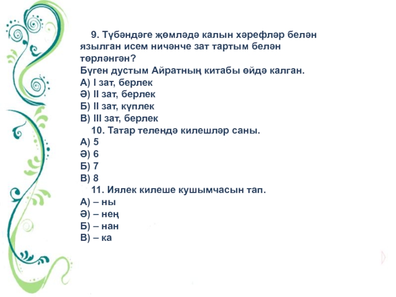 Слайд 20 9. Түбәндәге җөмләдә калын хәрефләр белән язылган исем ничәнче