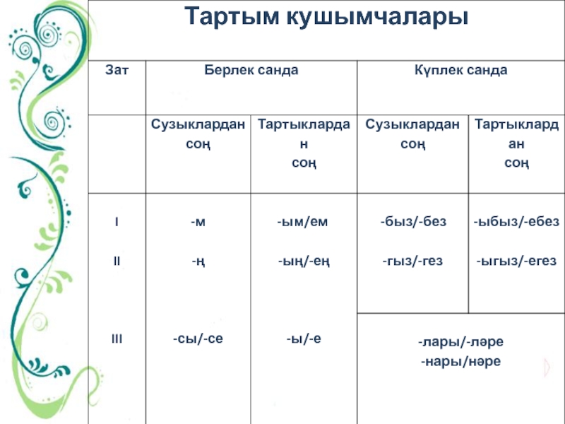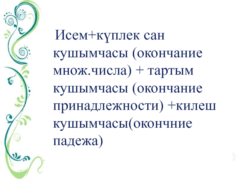 Слайд 17 Исем+күплек сан кушымчасы (окончание множ.числа) + тартым кушымчасы