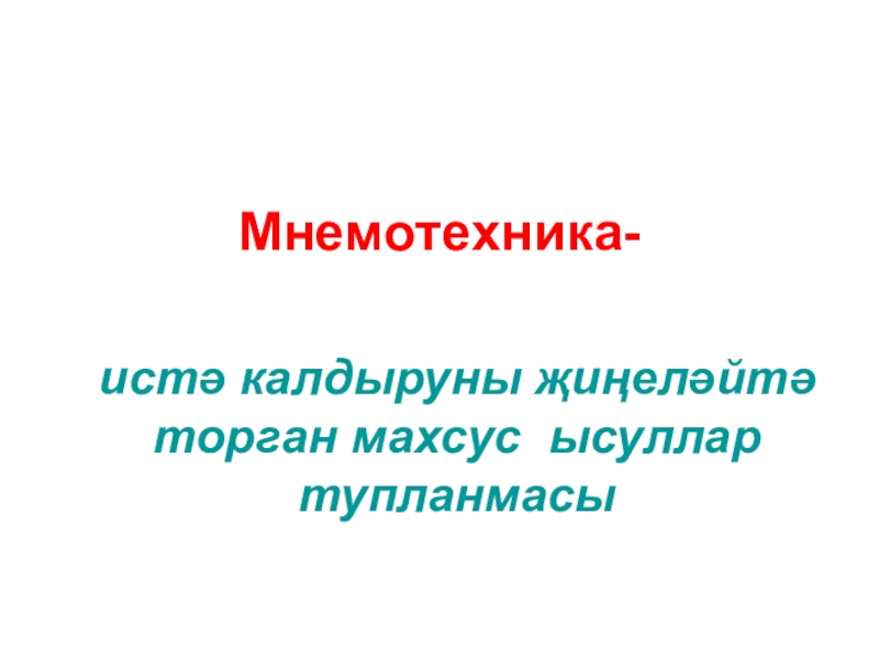 Слайд 1Татар теле һәм әдәбияты дәресләрендә мнемотехника алымын куллану