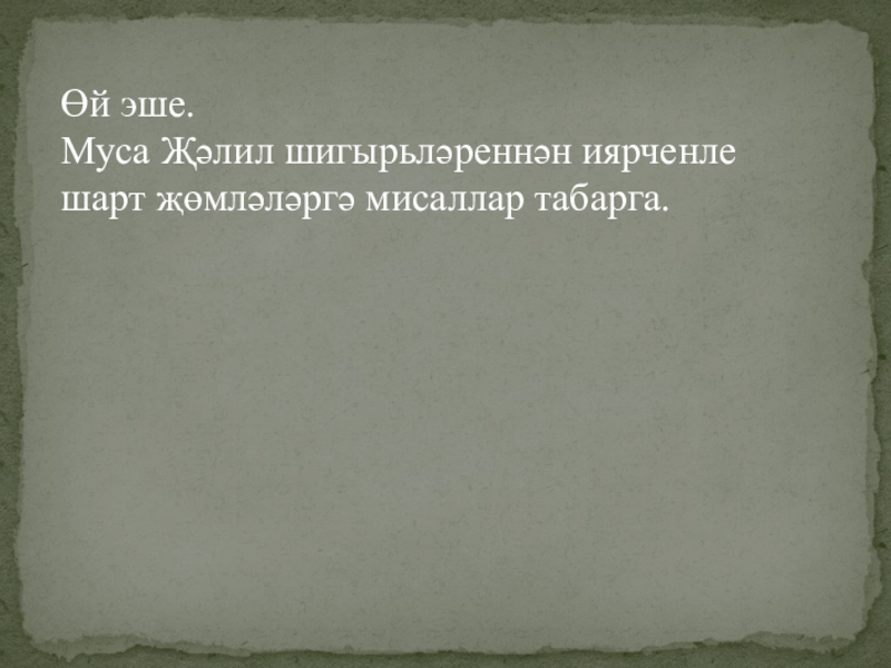 Өй эше. Муса Җәлил шигырьләреннән иярченле шарт җөмләләргә мисаллар табарга.