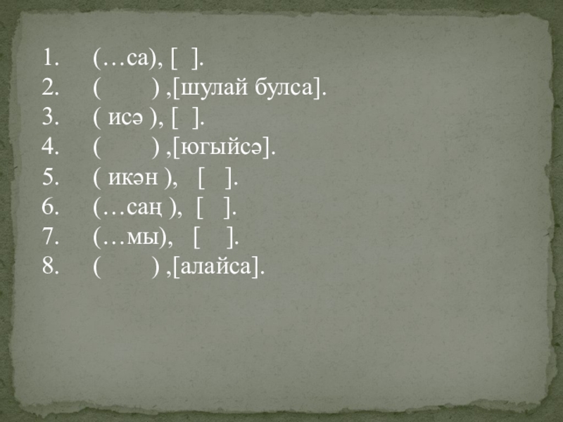 (…са), [ ].(    ) ,[шулай булса].( исә ), [ ].(    )