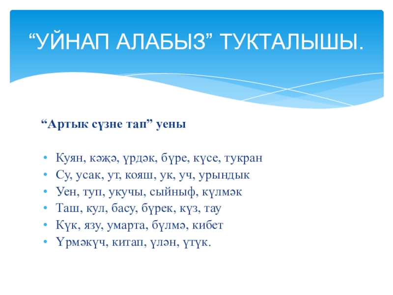 “УЙНАП АЛАБЫЗ” ТУКТАЛЫШЫ.