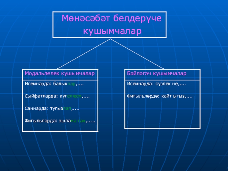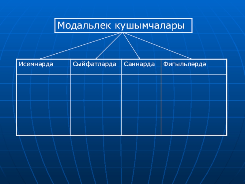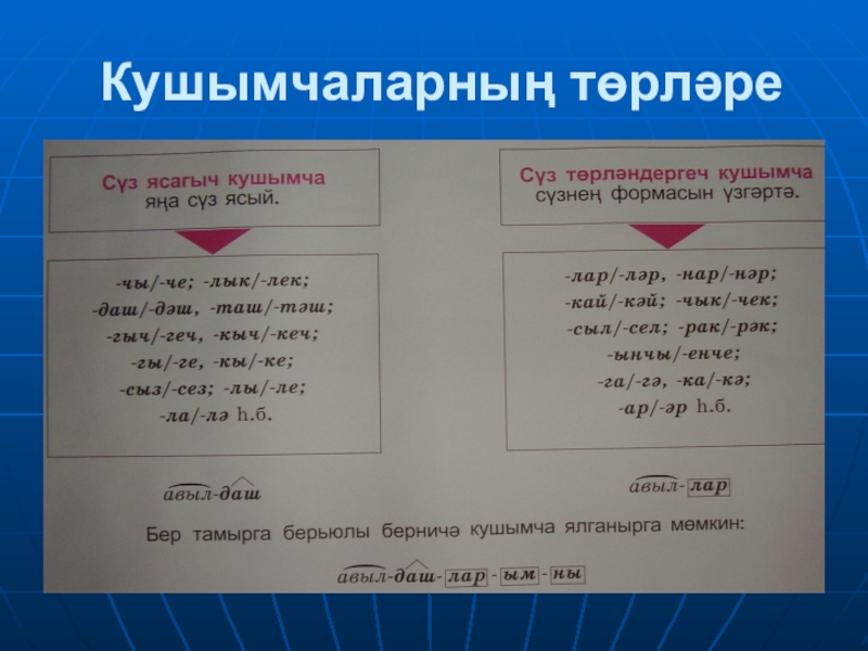 Слайд 29Кушымчалар төркемчәсе таблицасы.