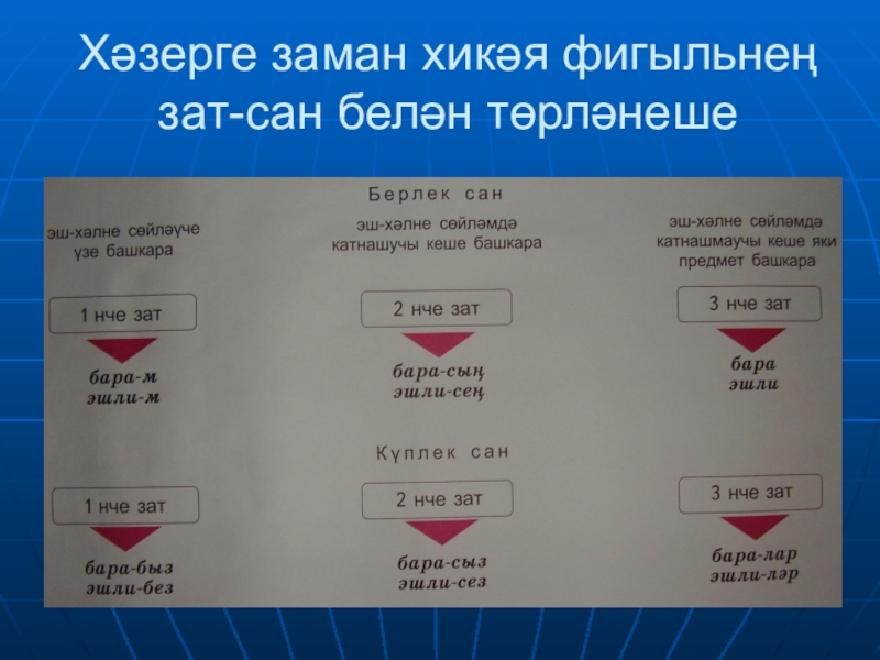 Слайд 15Хәзерге заман хикәя фигыльнең зат-сан белән төрләнеше