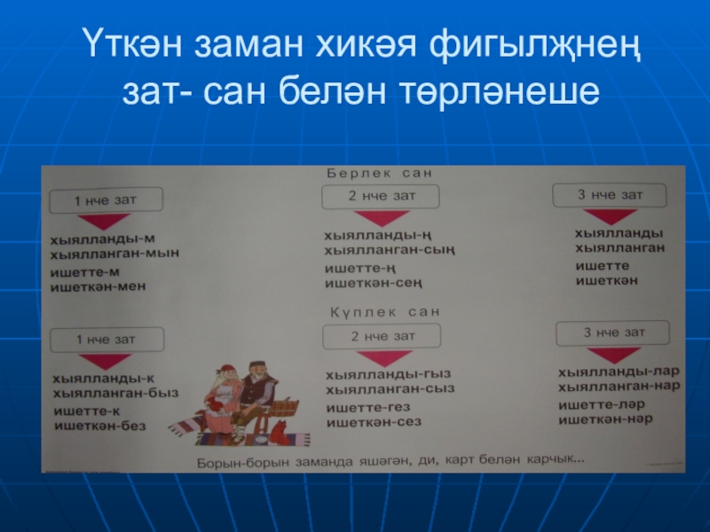 Слайд 16Үткән заман хикәя фигылҗнең зат- сан белән төрләнеше