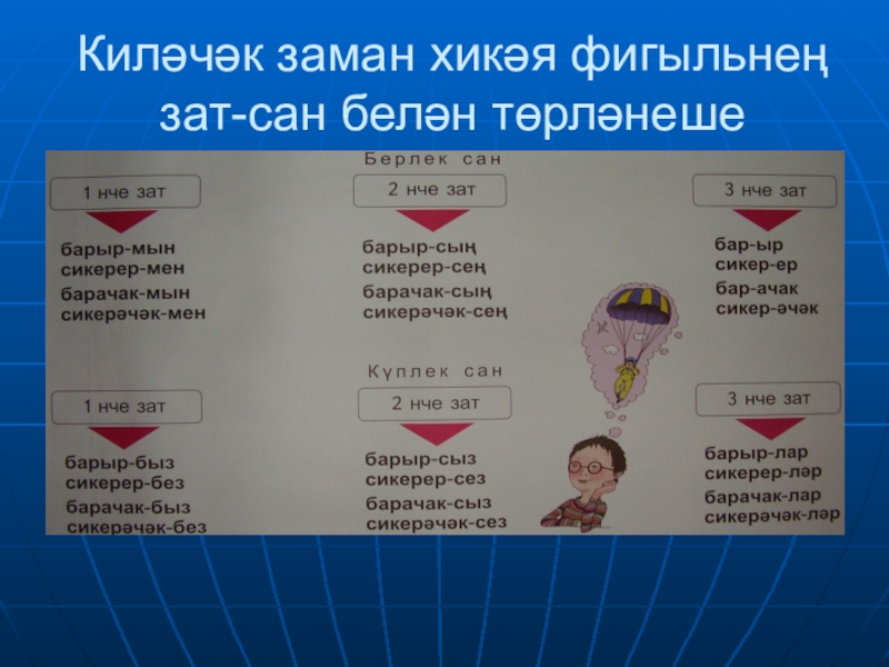 Слайд 17Киләчәк заман хикәя фигыльнең зат-сан белән төрләнеше
