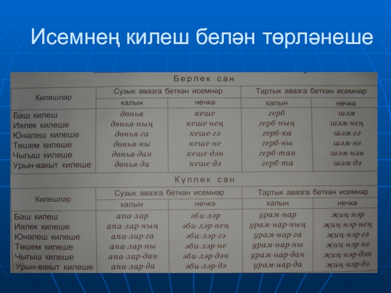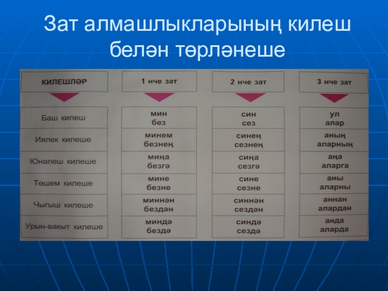 Слайд 19Зат алмашлыкларының килеш белән төрләнеше