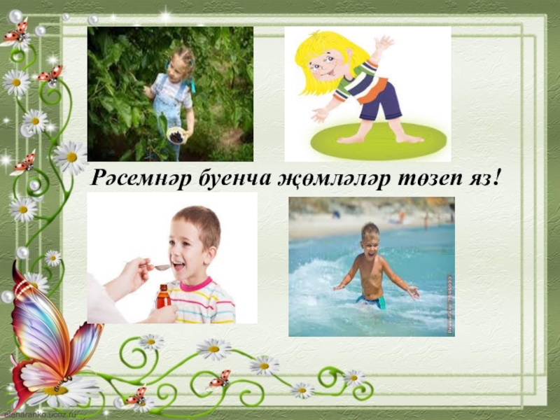 Слайд 7 Рәсемнәр буенча җөмләләр төзеп яз!