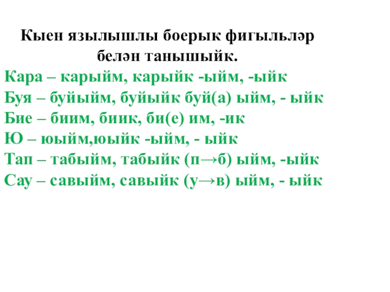 Кыен язылышлы боерык фигыльләр белән танышыйк.