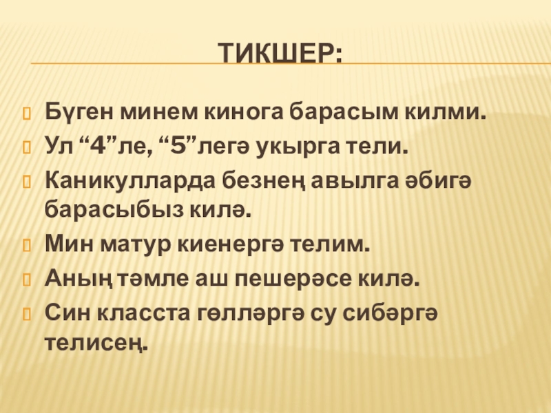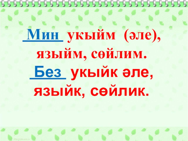 Слайд 23 Мин укыйм (әле), языйм, сөйлим.