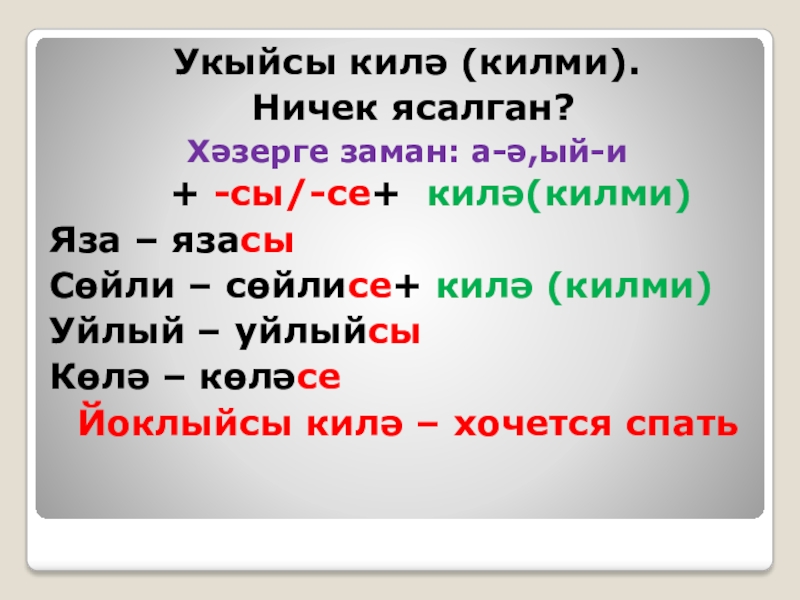 Слайд 21Укыйсы килә (килми).