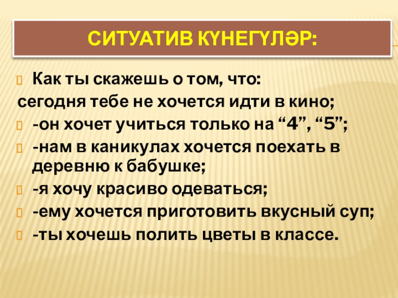Слайд 25Ситуатив күнегүләр: