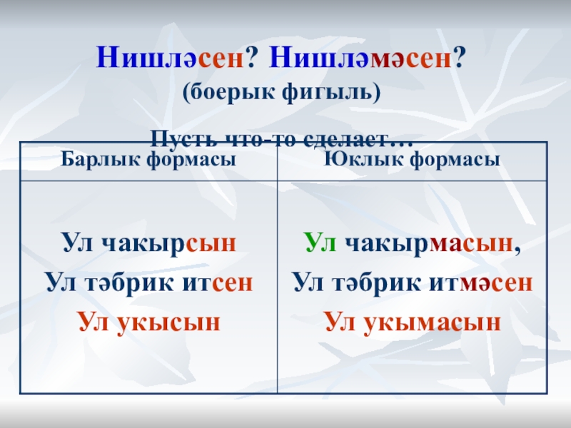 Слайд 6Нишләсен? Нишләмәсен? (боерык фигыль) Пусть что-то сделает…