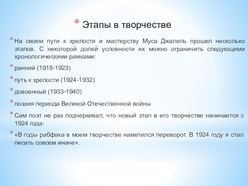 Сам поэт не раз подчеркивал, что новый этап в его творчестве начинается с 1924 года: