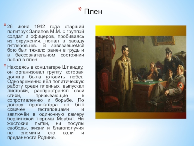 26 июня 1942 года старший политрук Залилов М.М. с группой солдат