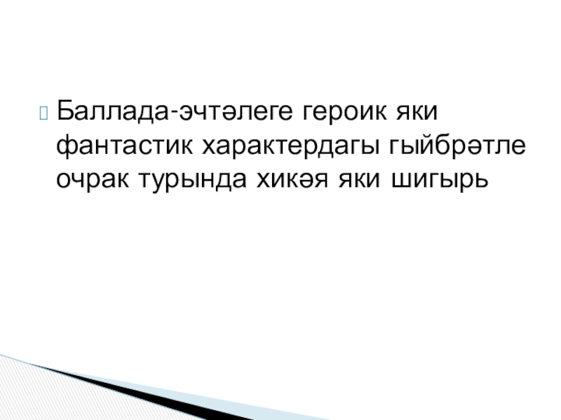 Слайд 4Баллада-эчтәлеге героик яки фантастик характердагы гыйбрәтле очрак турында хикәя яки шигырь