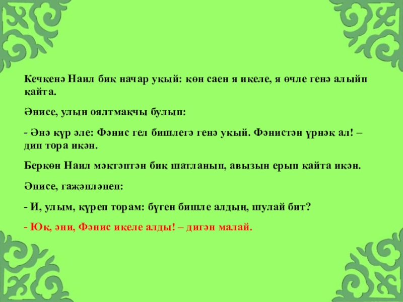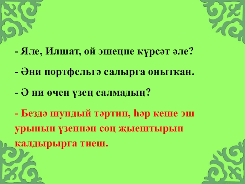 Слайд 29- Яле, Илшат, өй эшеңне күрсәт әле?