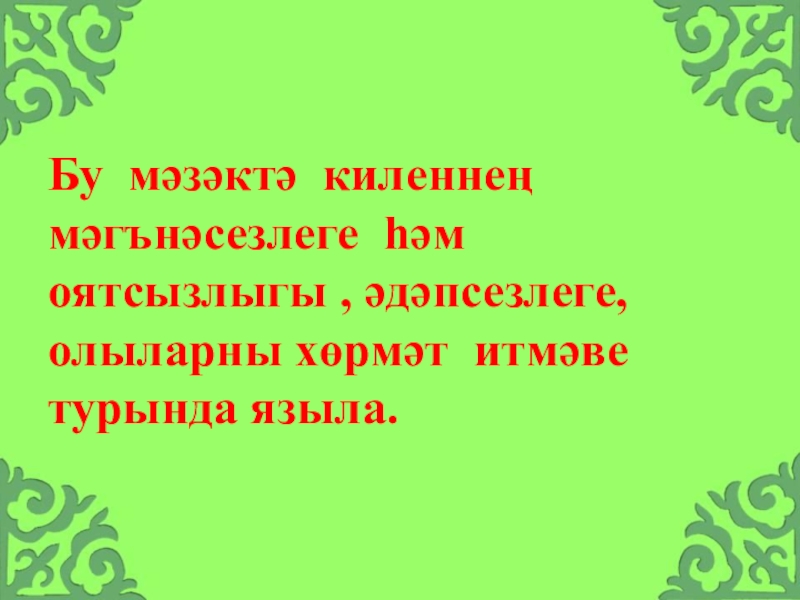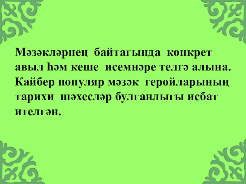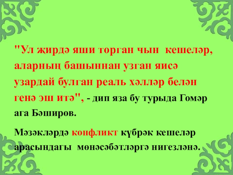 Слайд 10"Ул җирдә яши торган чын кешеләр, аларның башыннан узган яисә узардай