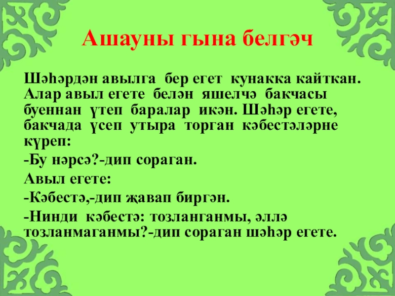 Слайд 18Ашауны гына белгәч