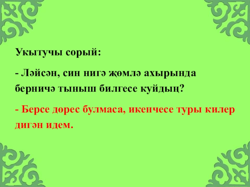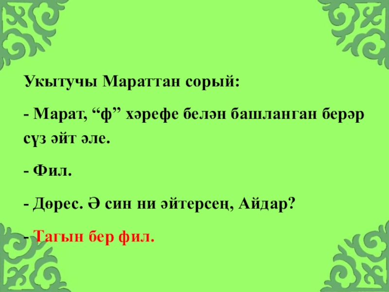 Слайд 26Укытучы Мараттан сорый: