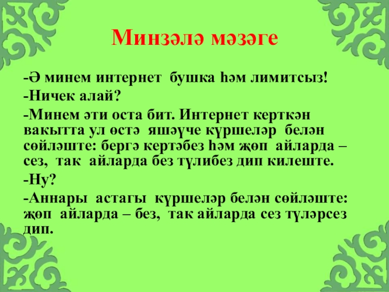 -Ә минем интернет бушка һәм лимитсыз!
