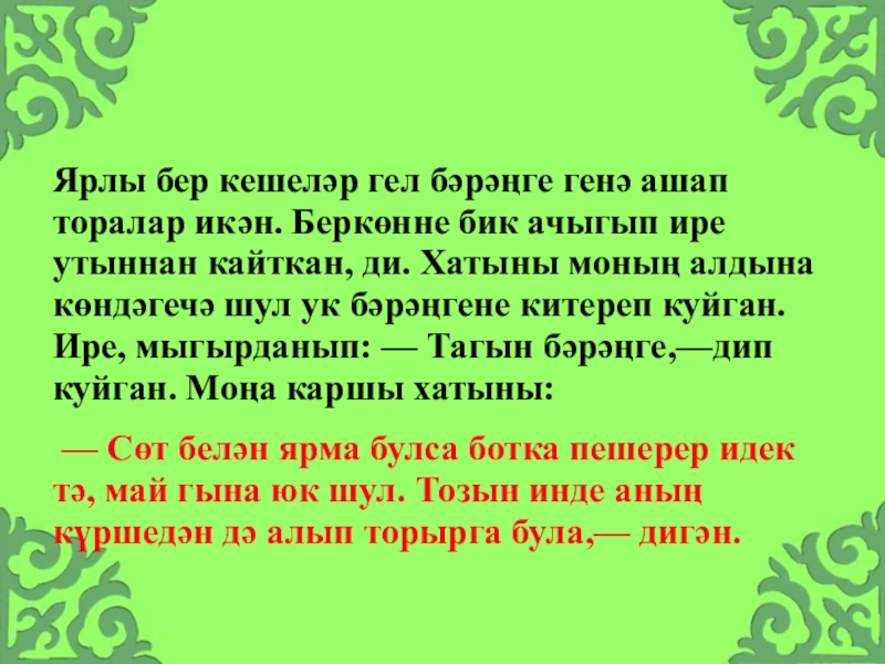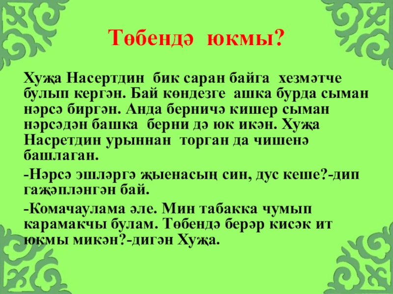Слайд 22Ярлы бер кешеләр гел бәрәңге генә ашап торалар икән. Беркөнне бик