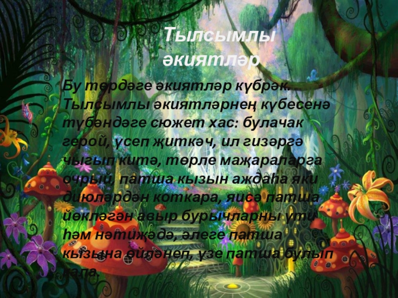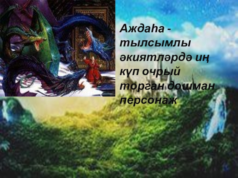 Слайд 13 Бу затлардан тыш, тылсымлы әкиятләрдә, геройның дошманнары