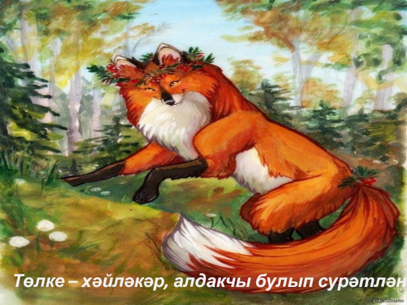 Слайд 7Төлке – хәйләкәр, алдакчы булып сурәтләнә.