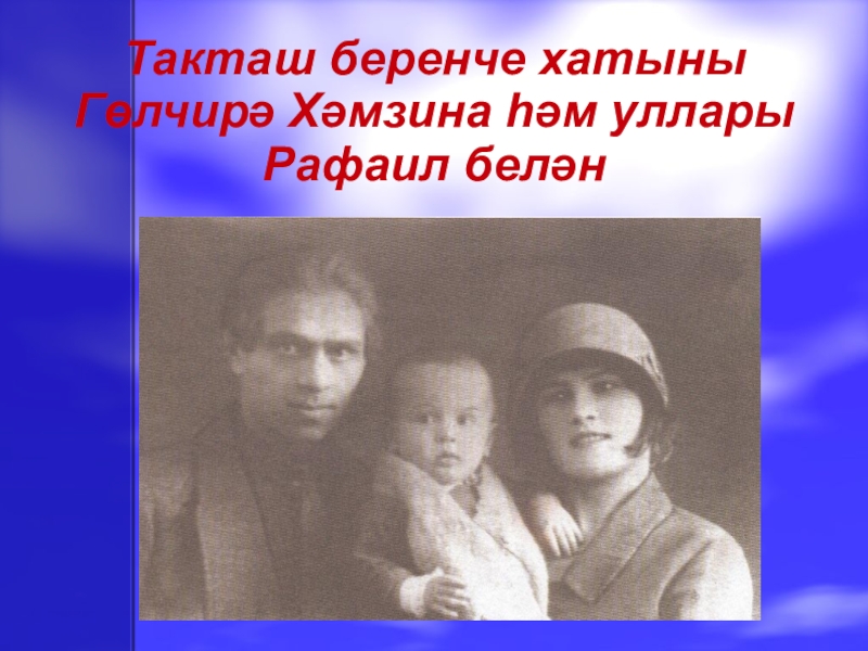 Слайд 16Такташ беренче хатыны Гөлчирә Хәмзина һәм уллары Рафаил белән