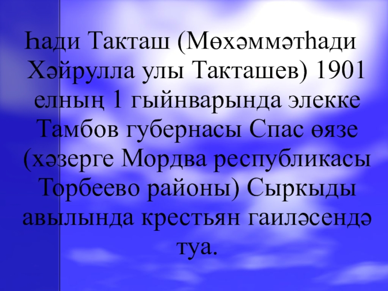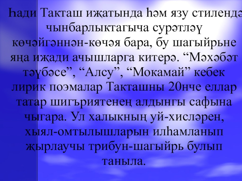 Презентация, доклад по татарской литературе на тему Х.такташ
