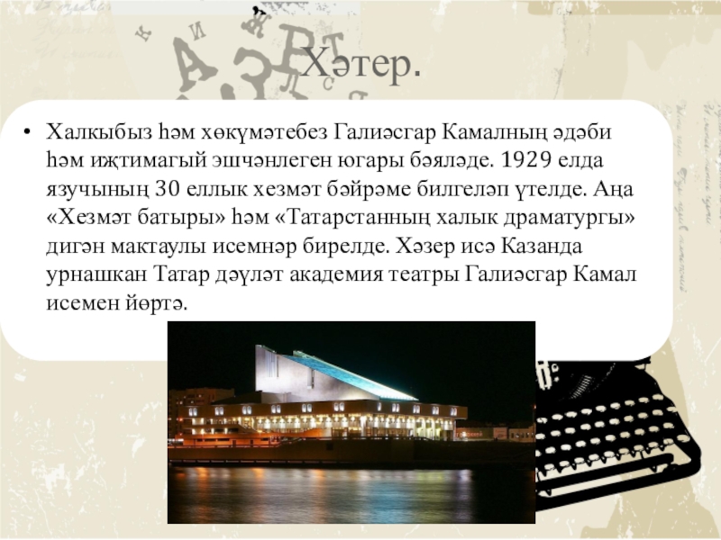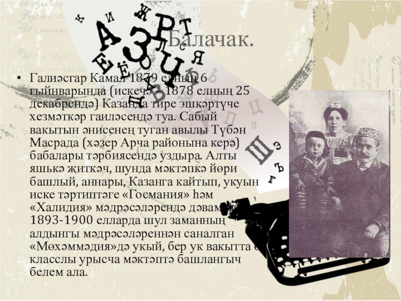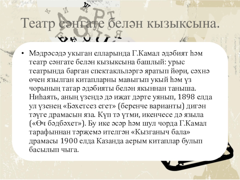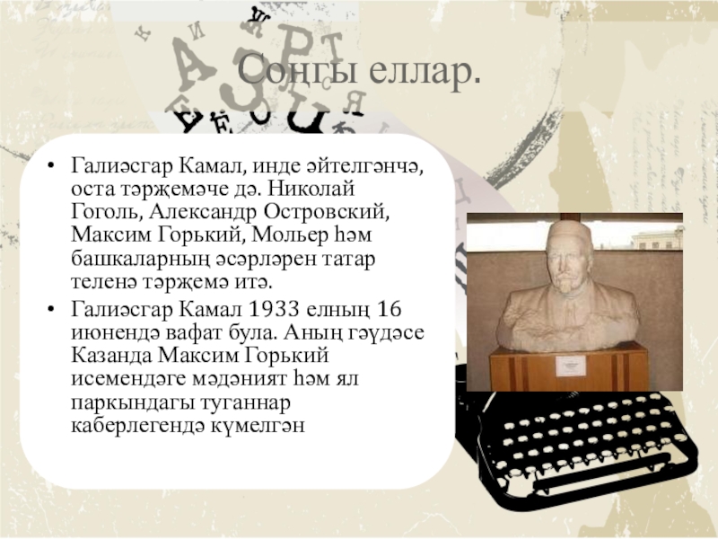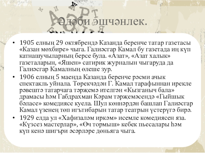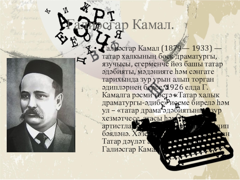 Презентация, доклад по татарской литературе на тему Галиасгар Камал
