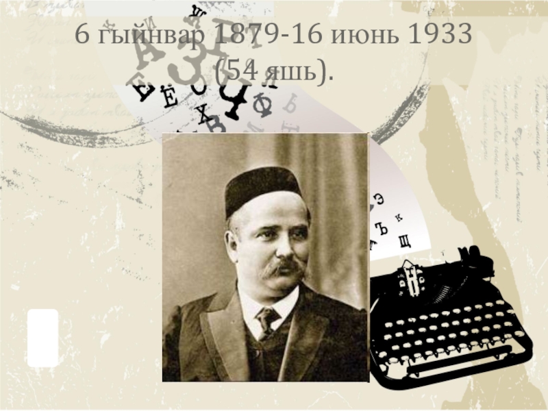 Слайд 96 гыйнвар 1879-16 июнь 1933 (54 яшь).