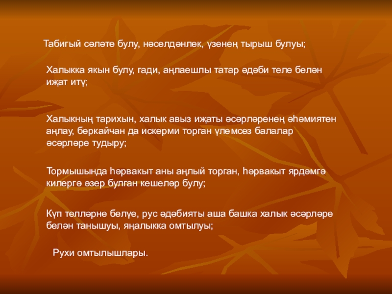 Күп телләрне белүе, рус әдәбияты аша башка халык әсәрләре белән танышуы, яңалыкка омтылуы;