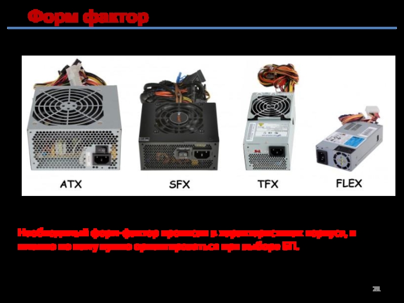 Мощность блока питания рассчитывается как сумма мощности всех компонентов компьютера + 30% (на пиковые нагрузки).
