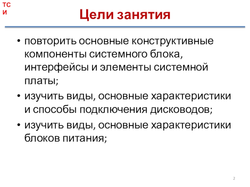 повторить основные конструктивные компоненты системного блока, интерфейсы и элементы системной