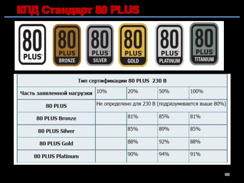 параметр, обозначающий, насколько эффективно блок питания может преобразовывать энергию для нужд комплектующих.