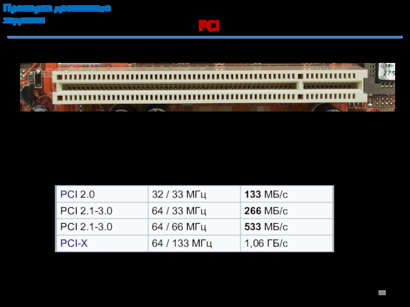 PCI — шина ввода-вывода для подключения периферийных устройств к материнской