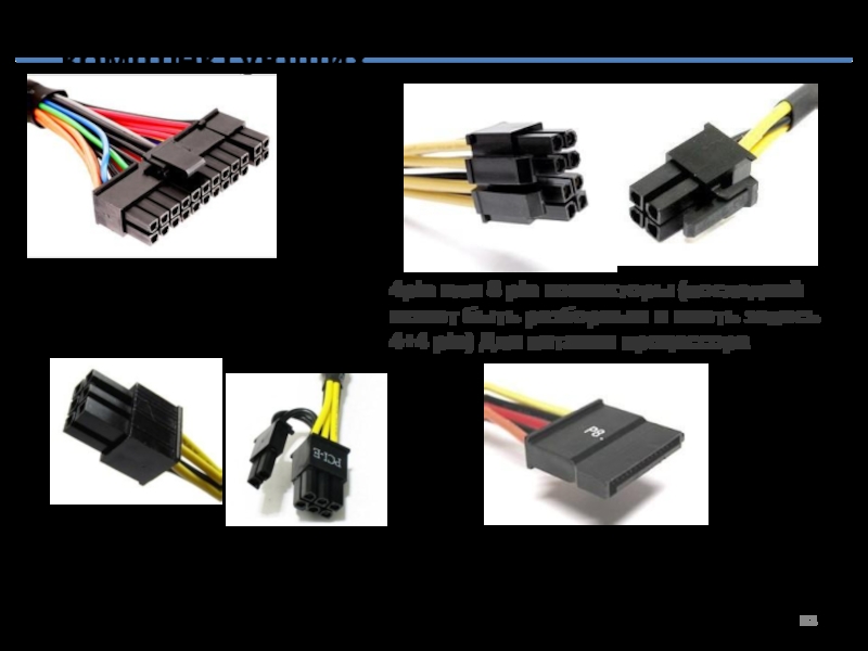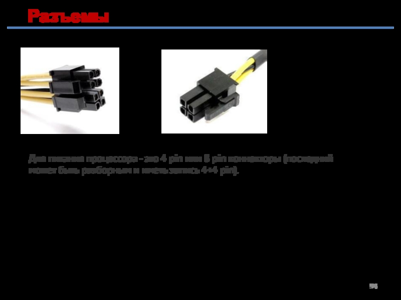 или 8 pin коннекторы (последний может быть разборным и иметь запись 4+4 pin) Для питания процессора