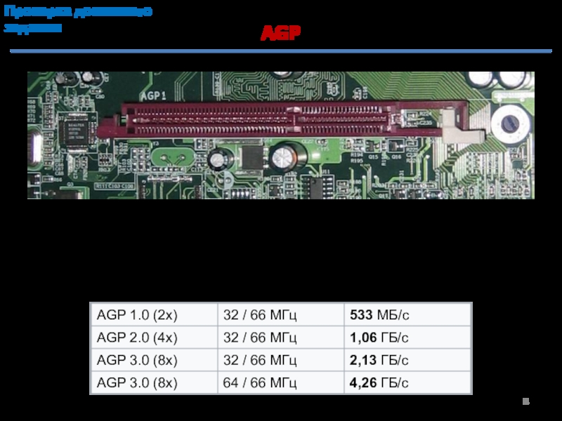 AGP (от англ. Accelerated Graphics Port, ускоренный графический порт) — специализированная 32-разрядная системная шина для видеокарты