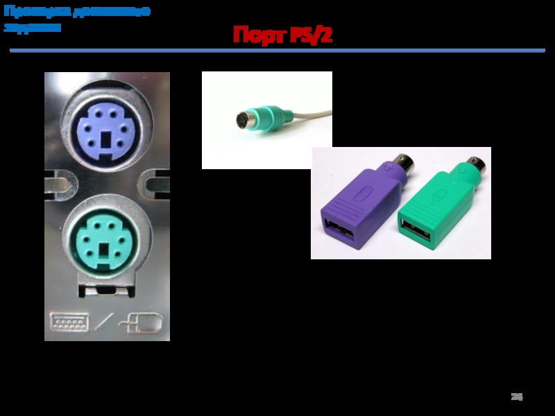 PS/2 - порт подключения клавиатуры (фиолетовый) и/или мыши(зеленый). В последнее время редко
