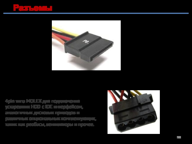 с IDE интерфейсом, аналогичных дисковых приводов и различных опциональных комплектующих, таких как реобасы, вентиляторы и прочее.