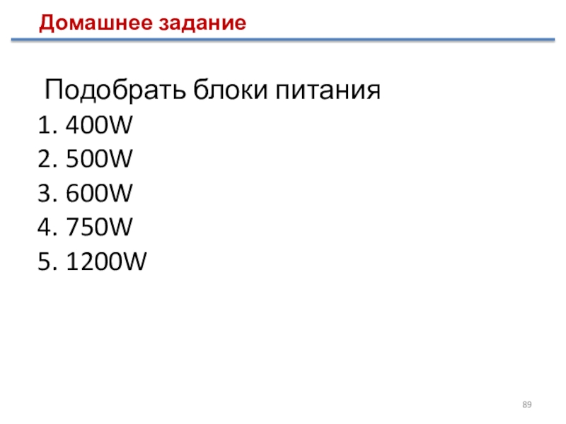 Материнская плата начального класса 50 Ватт, среднего класса 75 Ватт, высокого класса 100 Ватт