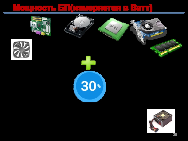 компонентов компьютера + 30% (на пиковые нагрузки).
