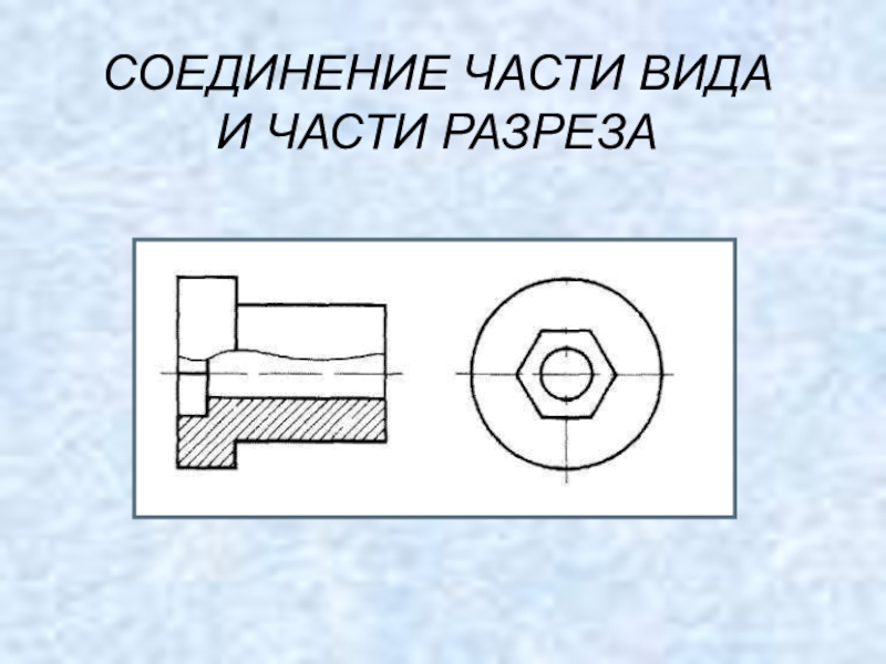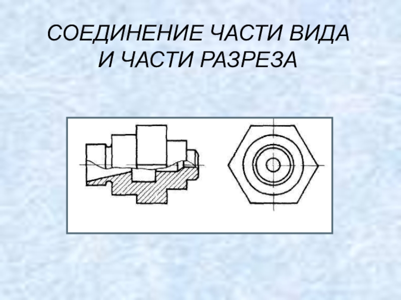 Слайд 13СОЕДИНЕНИЕ ЧАСТИ ВИДА И ЧАСТИ РАЗРЕЗА